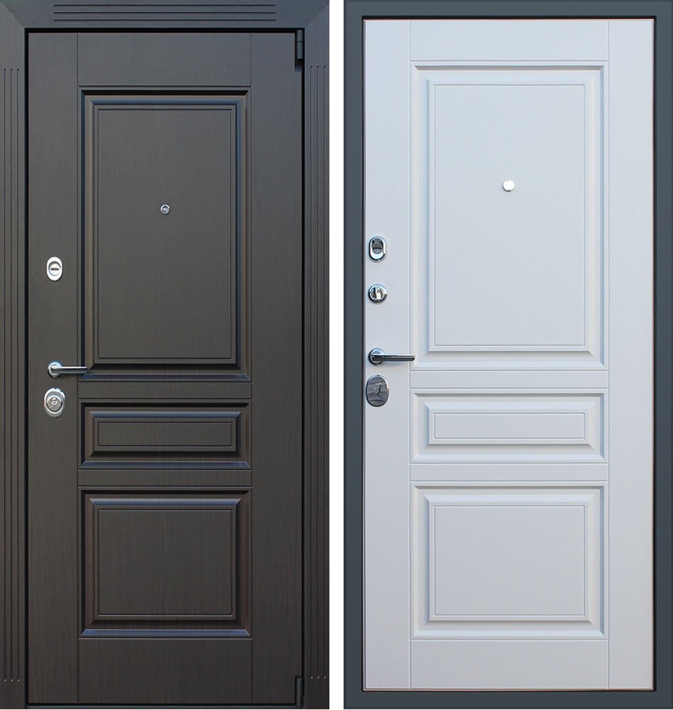 Порошковое покрытие "муар черный". Панель МДФ 16 мм. Объемная фрезеровка. Цвет "венге". Наличник МДФ: толщина 16 мм, ширина 85 мм.