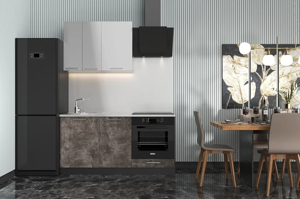 Ручки, столешница, стеновая панель, мойка, смеситель и бытовая техника продаются отдельно.